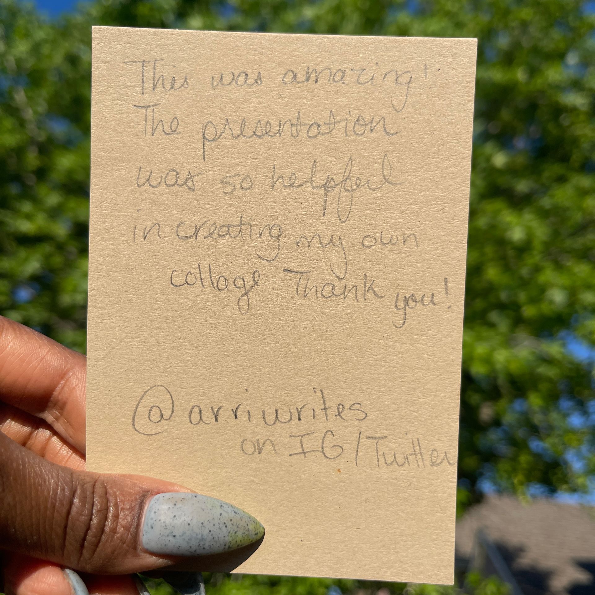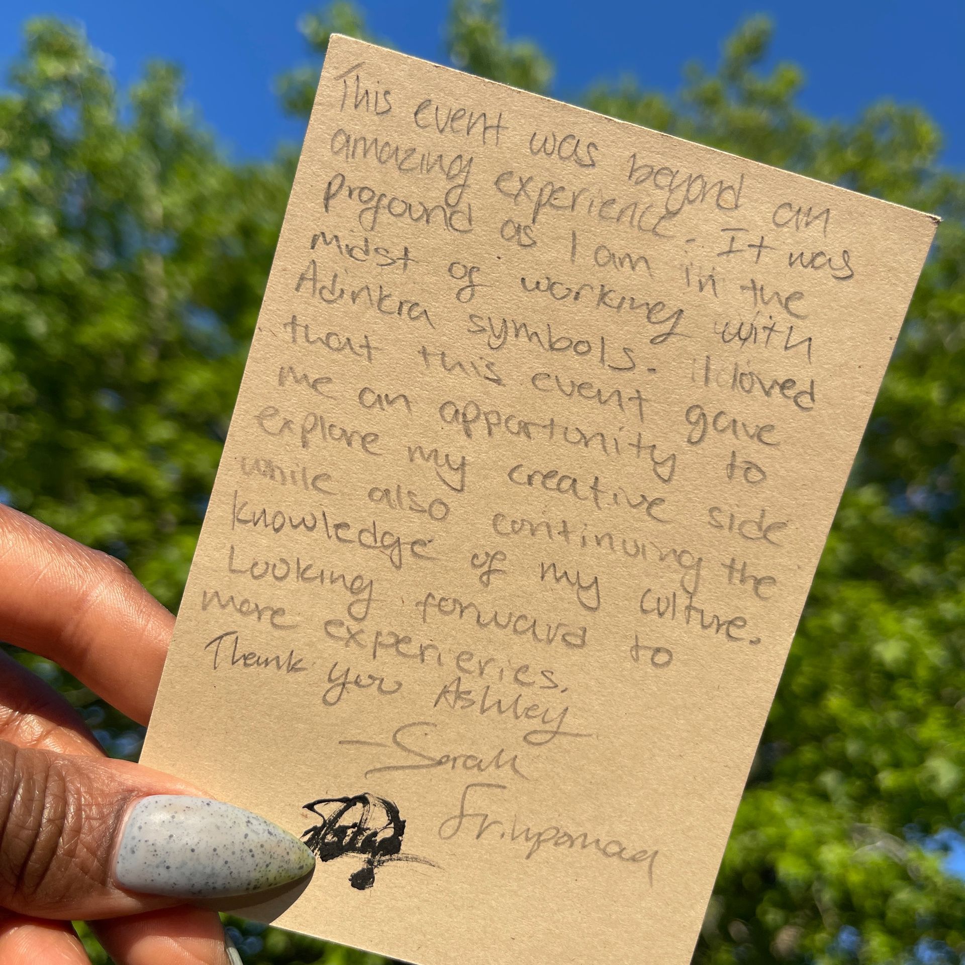 "This was so fun. I enjoyed being able to sit down and be creative in the middle of my busy day. AND... I learned something. It's the duality for me, sis. Fun with intellectual undertones."