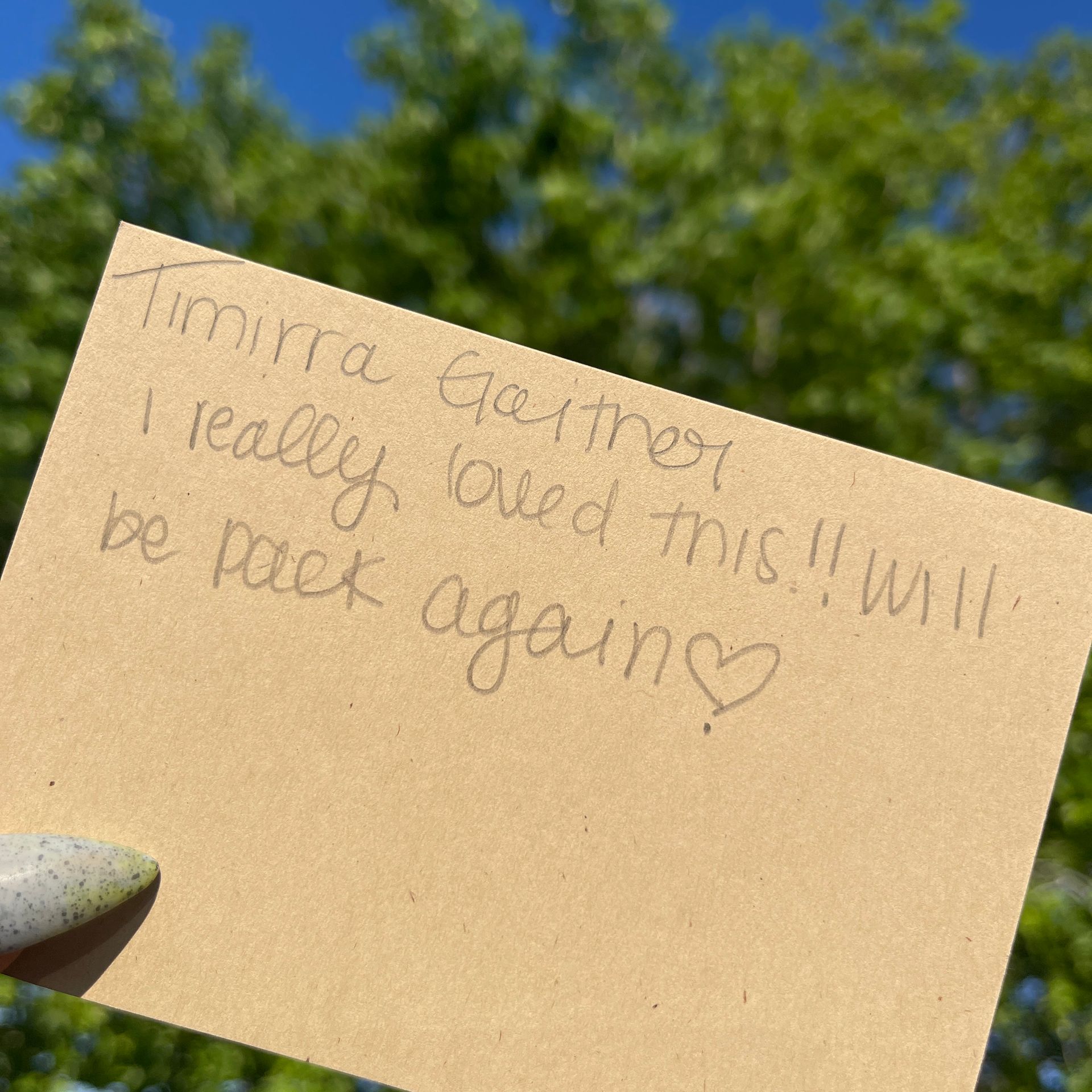 "I really appreciated that it was art with a purpose! We were fed in multiple ways, and everything was included. Thank you for a great experience."